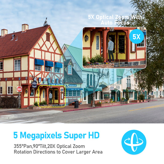 JideTech Outdoor PTZ POE Security Camera, HD 5MP Auto Tracking IP Camera with 5X Zoom