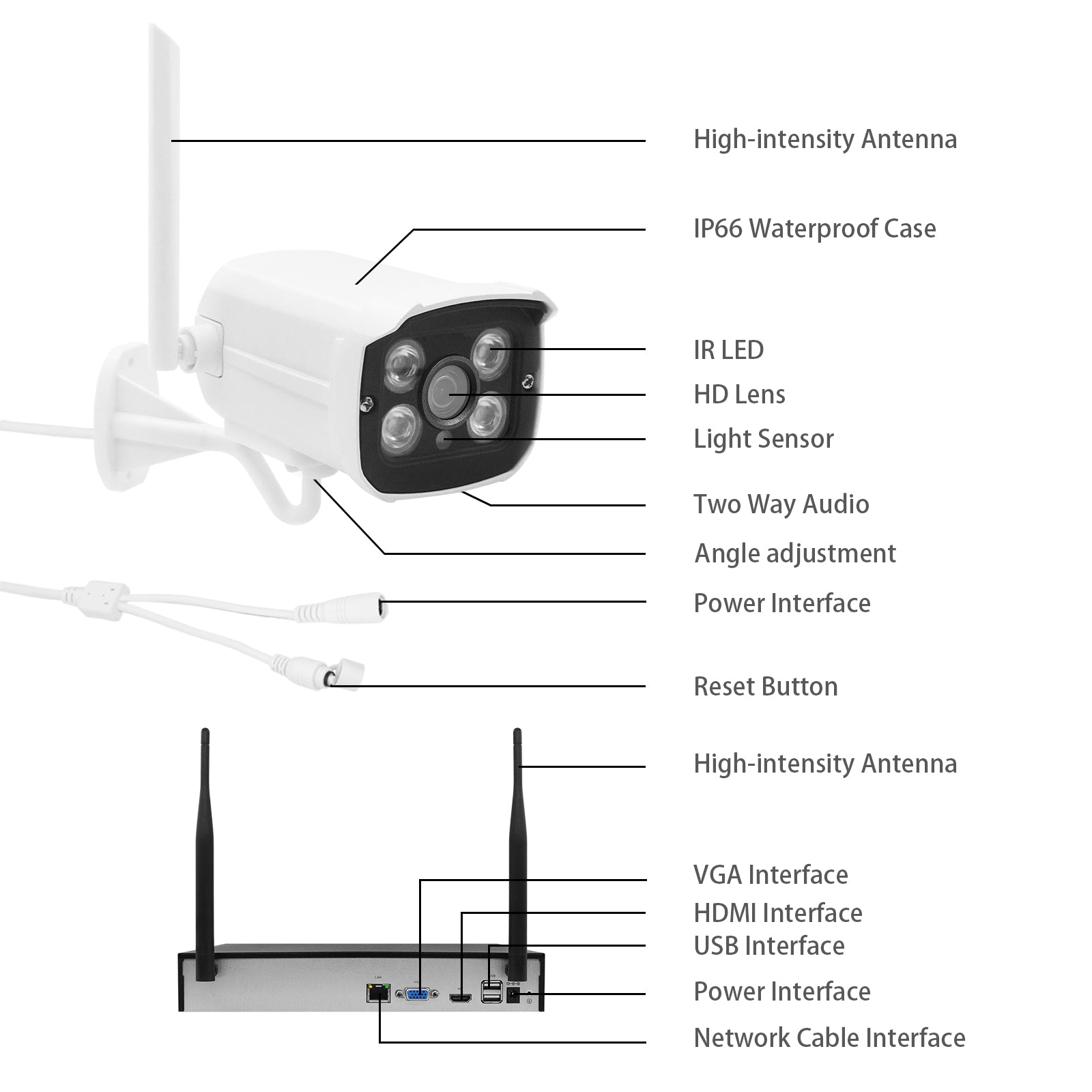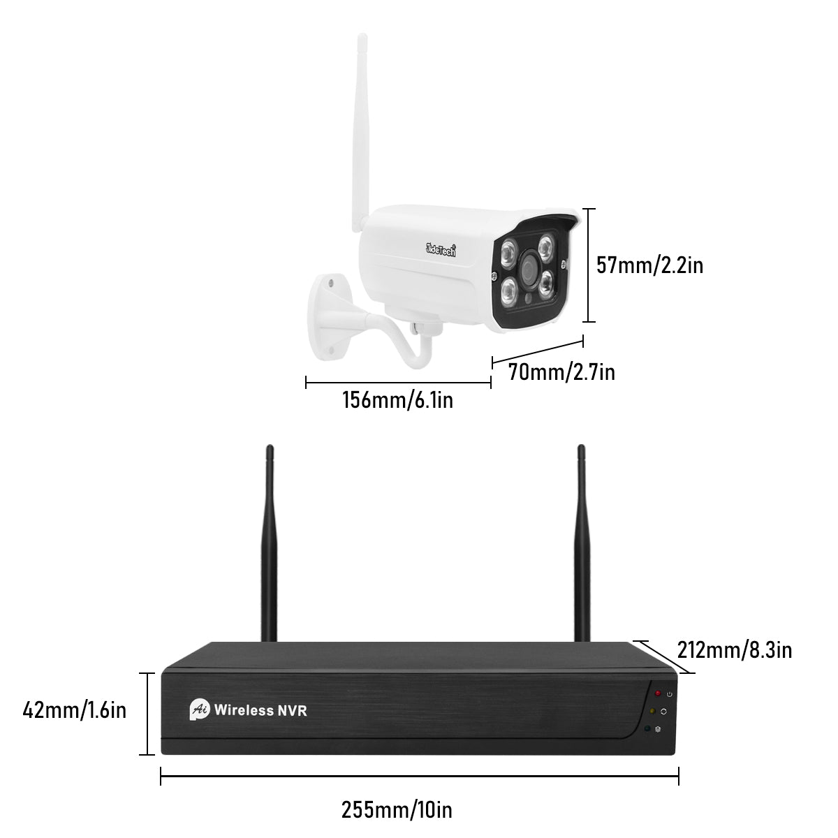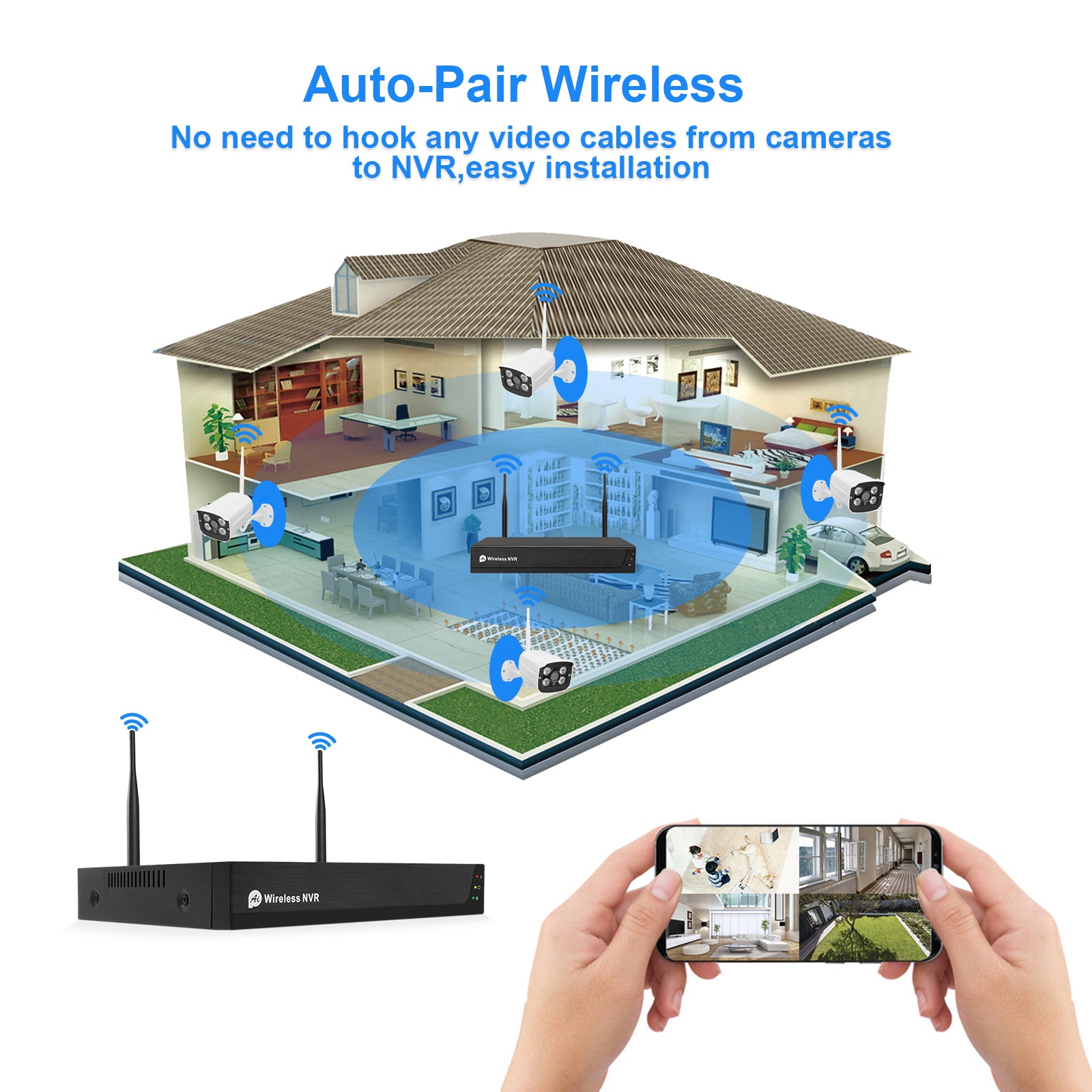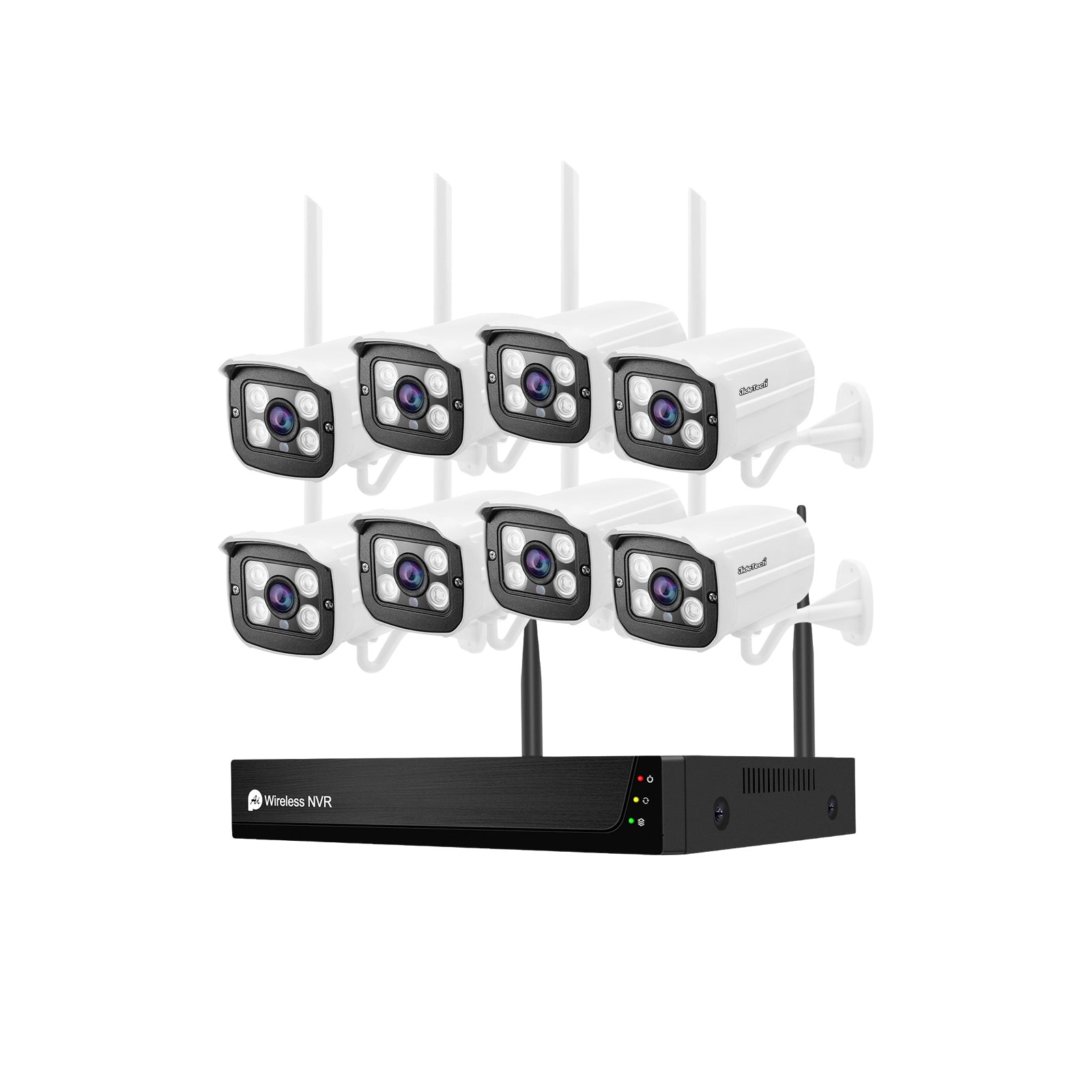 2. 1080P H.265+ wireless network recorder and 8 1080P wireless cameras