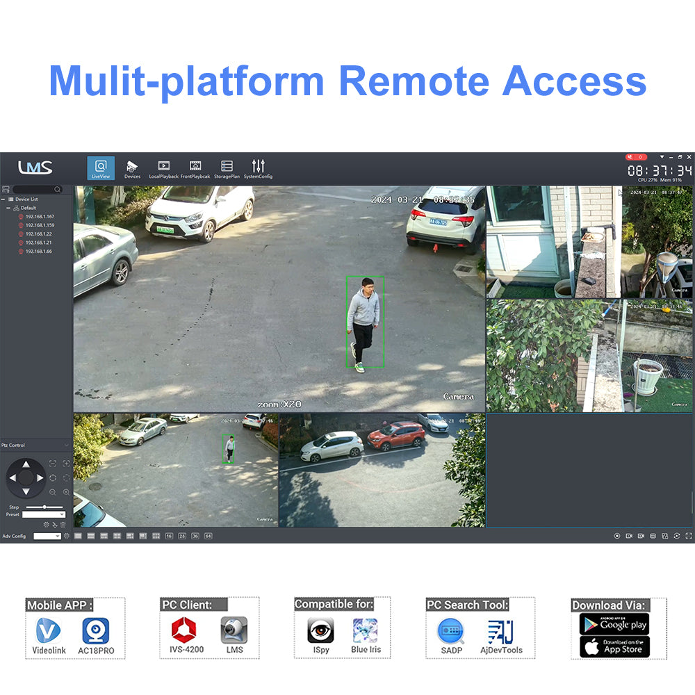 - H.265+/H.265/H.264+/H.264/MJPEG video compression, Support Onvif, Built-in Microphone