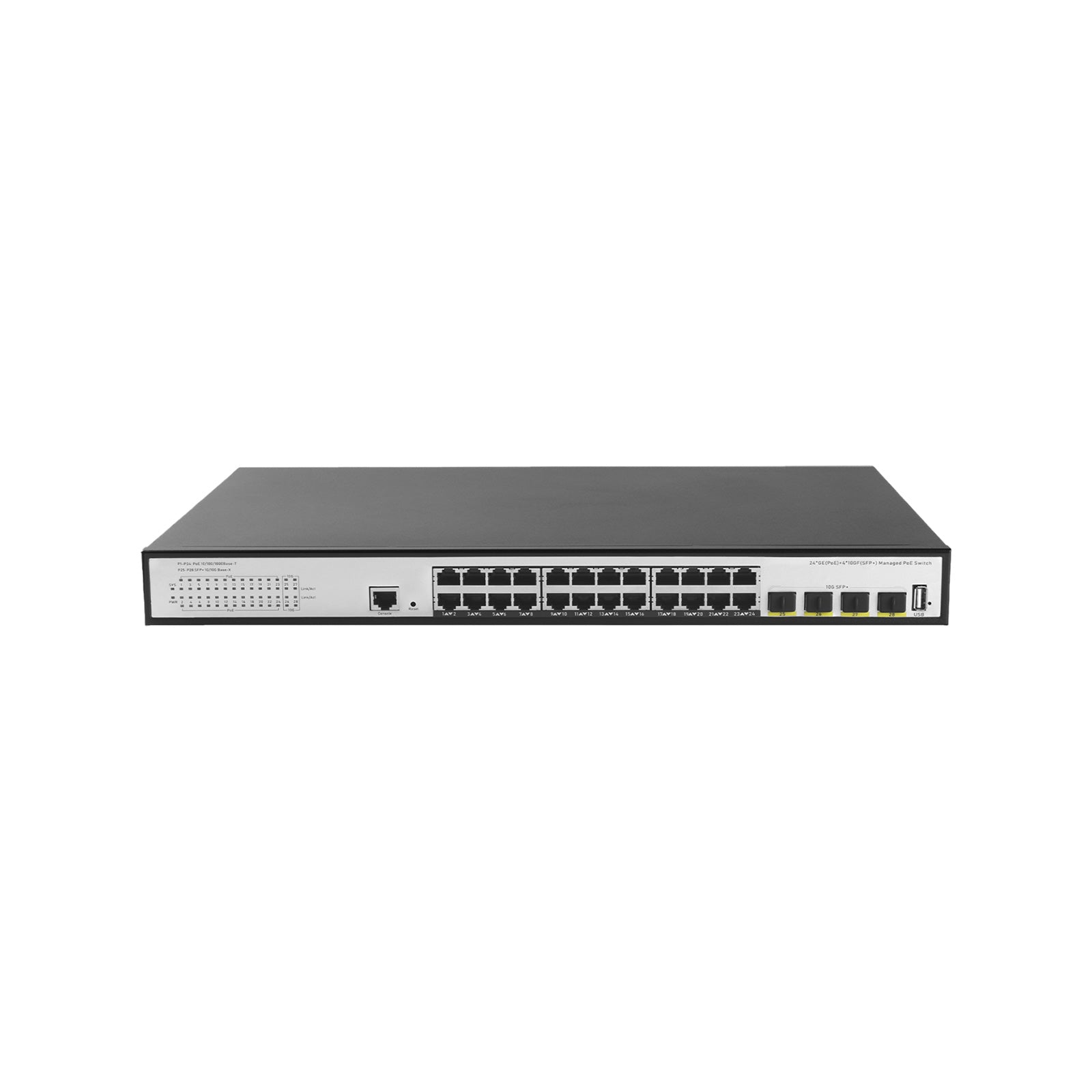 1:24 10/100/1000M network ports + 4 1/10G optical ports + 1 Console port + 1 USB serial port, three-layer network management Ethernet switch