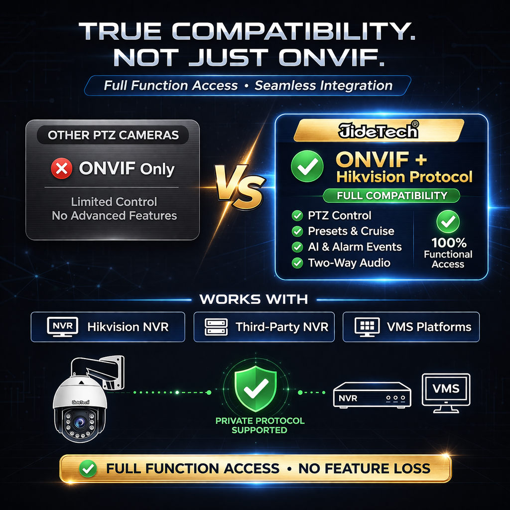 | Absolute Positioning | Support ONVIF and Onvif Absolute move, RTSP, RTMP, Hikvision protocol, Absolute Positioning | ||